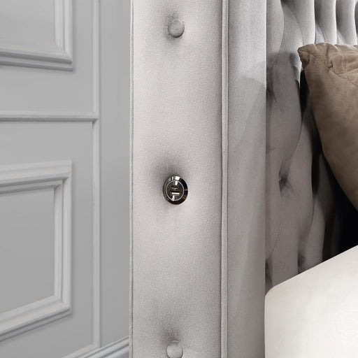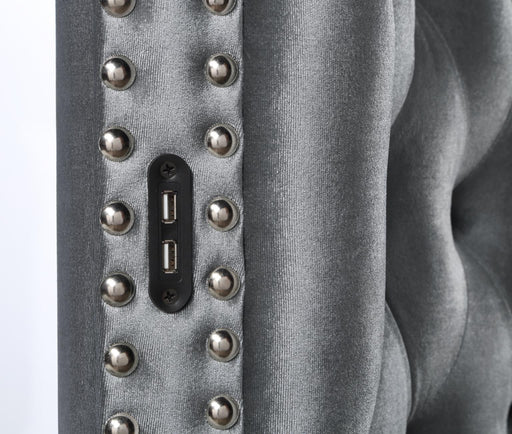 B546 Gray Velvet King Bed With Bluetooth Speaker-UsbDimension: Length 98 x Width 108.5 x Height 55 B546 Gray Velvet Queen Bed With Bluetooth Speake...