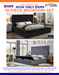 INCLUDES QUEEN HEADBOARD, STORAGE FOOTBOARD, RAILS, CLASSIC 2-SIDED MATTRESS, 7 PIECE COMFORTER SET, 6 PIECE SHEET SET, AND 2 PILLOWS