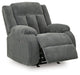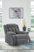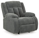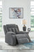 There's no need to sacrifice looks for comfort—this power rocker recliner serves up both, plus a richly relaxed sense of style. Its steel-hued velvet upholstery is ultra soft, with a plush waffle weave for an added layer of interest. The overstuffed pillow top armrests are custom made for lazy afternoon catnaps. And a one-touch power control takes the pleasure of reclining to a higher level.