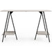 - Sawhorse legs with gunmetal finish