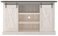 With its two-tone finish, crossbuck details and authentic charm, this TV stand is right in tune with your relaxed approach to high style. Beautifully made to accommodate your media equipment, it’s well equipped with adjustable shelving, cutouts for wire management and, of course, a pair of sliding barn doors you can center or place to the side. What a mastery in modern farmhouse living.