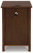 Add big character to a small space with this chairside end table. With its compact size and strong silhouette, it can go anywhere and blend easily into the decor. Less is so much more with the Shaker-inspired design and gray wood tone finish. Loaded with form and function, this end table displays accent pieces and stores essentials securely while keeping devices powered up.